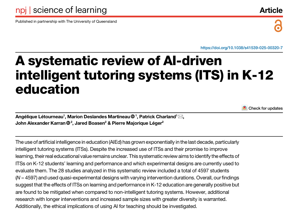 论文摘要: 过去十年中,人工智能(AIEd)在教育中的应用呈指数级增长,尤其是智能辅导系统(ITSs)。尽管I […]