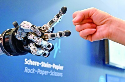 在德国汉诺威工博会上,参观者与一款智能机器人进行“石头剪子布”游戏。新华社发 2024年中国国际服务贸易交易会 […]